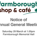 We are pleased to give official notice of the Annual General Meeting of Farmborough Community Shop on Saturday 29 March from 1pm at Farmborough Memorial Hall.